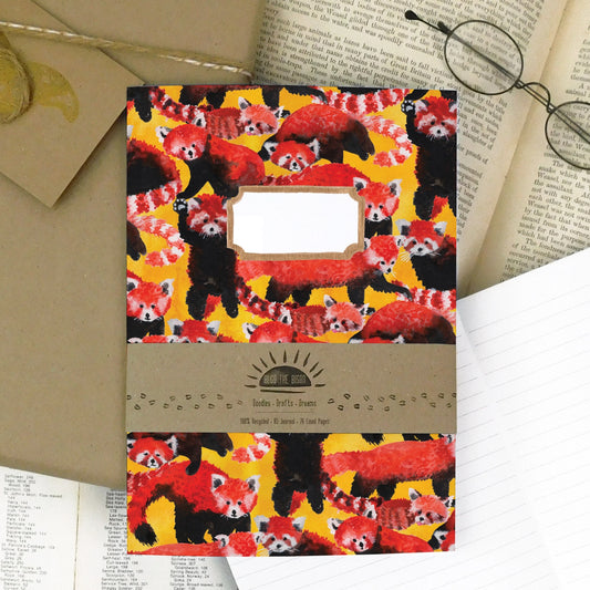 Pecyn o Pandas Coch Print A5 Journal - Lined
