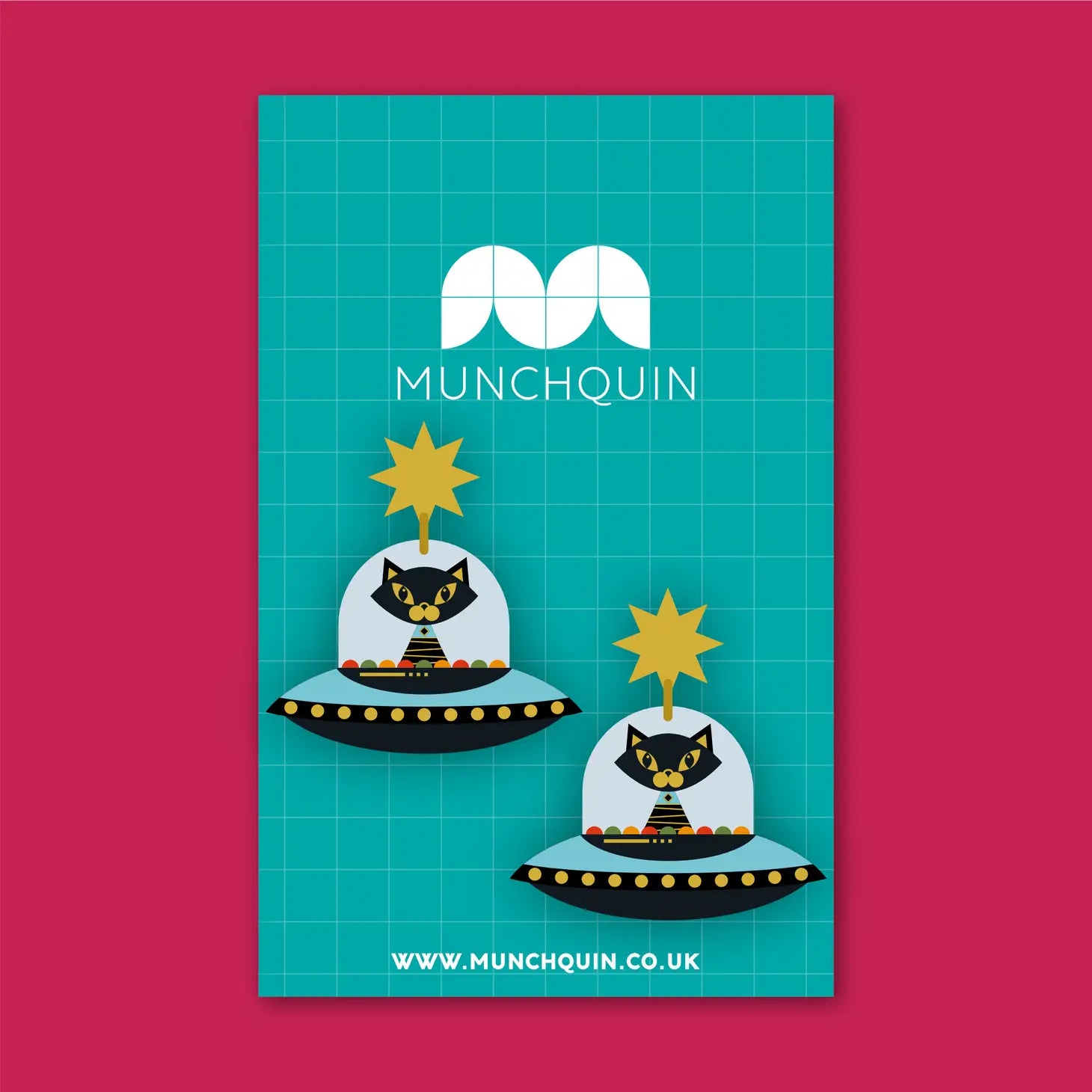 Wedi'u hysbrydoli gan yr oes atomig, mae'r clustdlysau hyn wedi'u hargraffu â UV a'u torri â laser o bren haenog bedw o ffynonellau cynaliadwy ac yna'n cael eu cydosod â llaw. Mae ganddyn nhw byst dur di-staen ar y stydiau felly maen nhw'n berffaith ar gyfer clustiau sensitif.