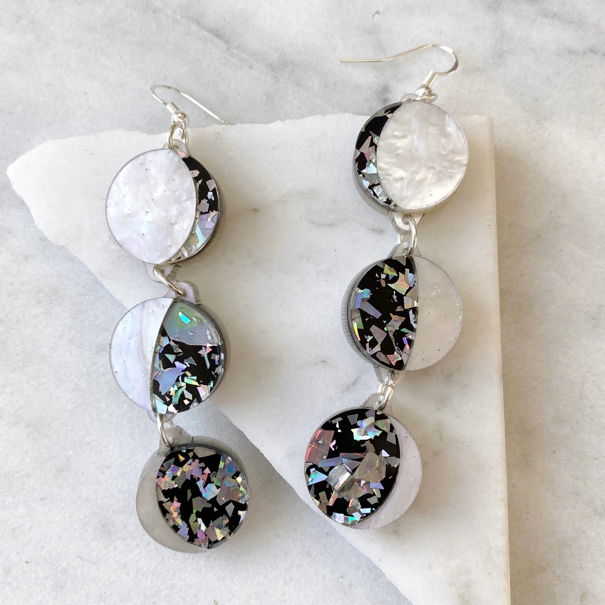 Mae'r clustdlysau hon gyda chamau lleuad chwaethus wedi'u torri â laser wedi'u gwneud o gyfuniad o acryligau moethus hardd , gan greu silwét lleuad ac awyr hyfryd .
