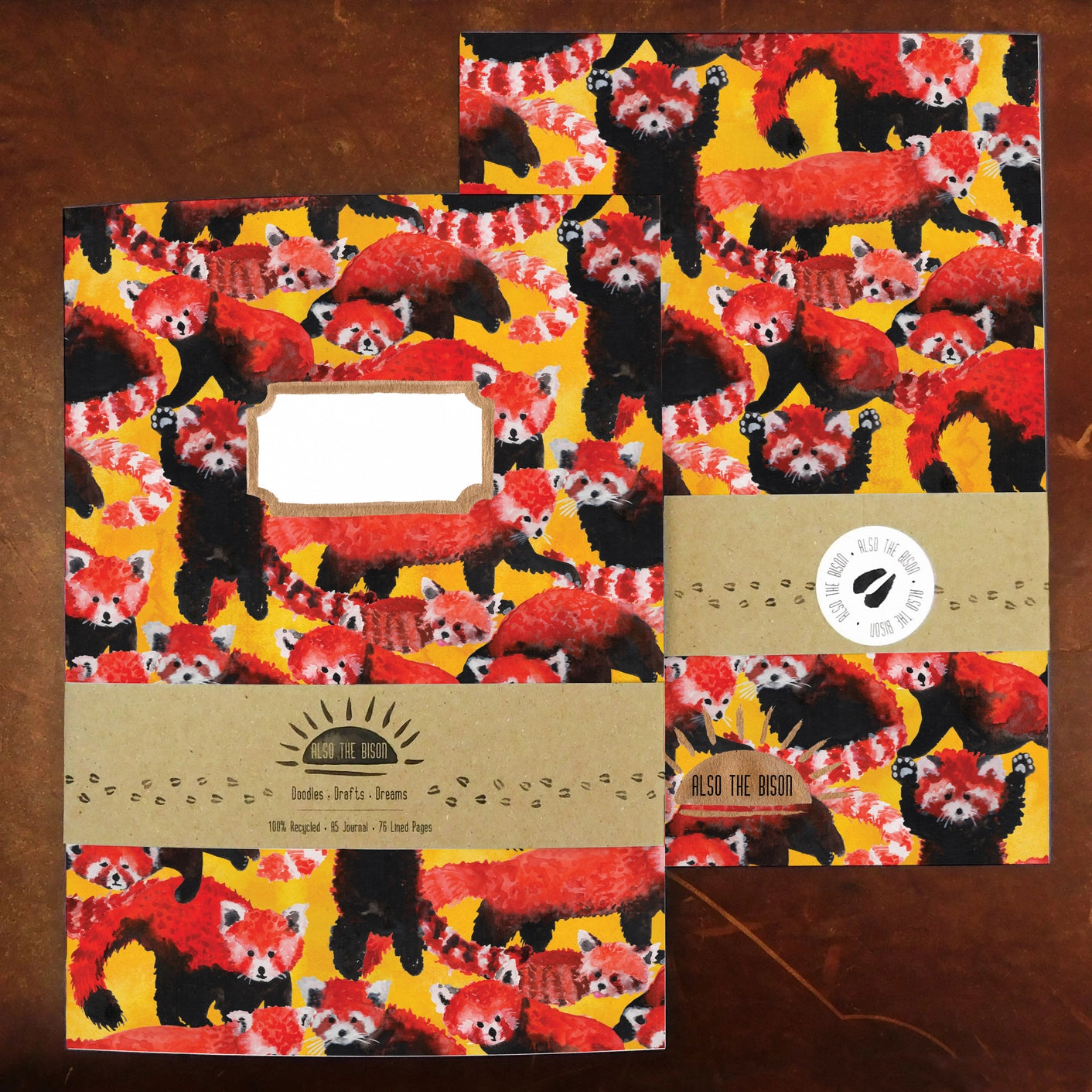 Pecyn o Pandas Coch Print A5 Journal - Lined