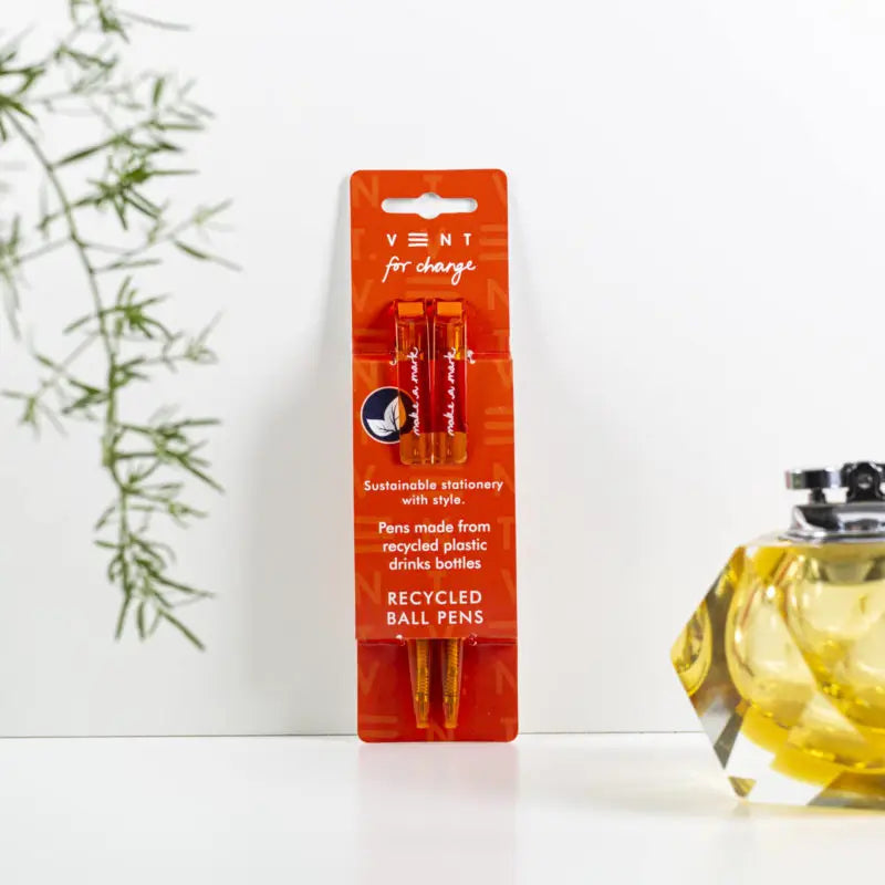 Pecyn o 2 beiro wedi'u hailgylchu mewn llawes pin Oren Gwneud Marc.