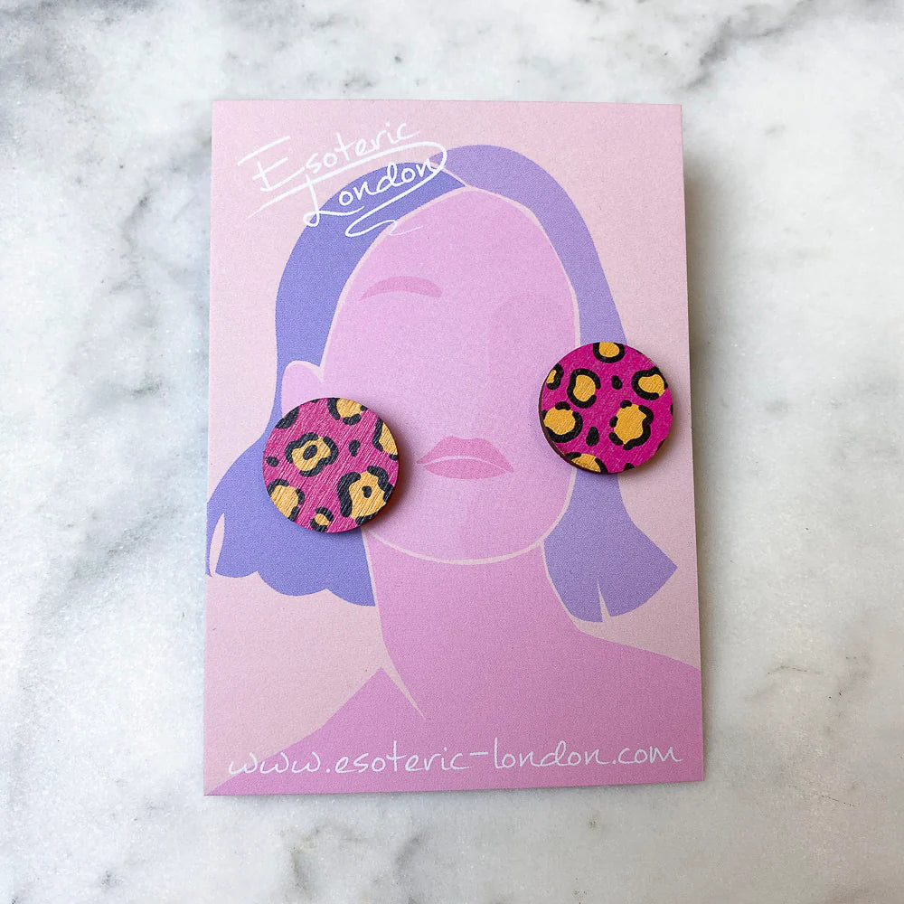 Clustdlysau gre print anifeiliaid graffig o'r 1980au mewn print llewpard pinc.