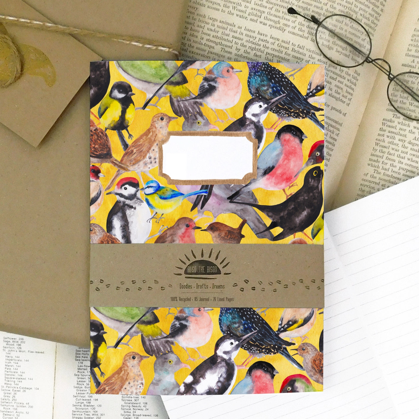 Also the Bison journals feature a blank, customisable box on the front cover for labelling and recording your musings. Perfect for jotting down notes, ideas, dreams and doodles. Notebooks are packed 'naked' and plastic-free, with a decorative kraft paper bellyband that makes them perfect for gifting.