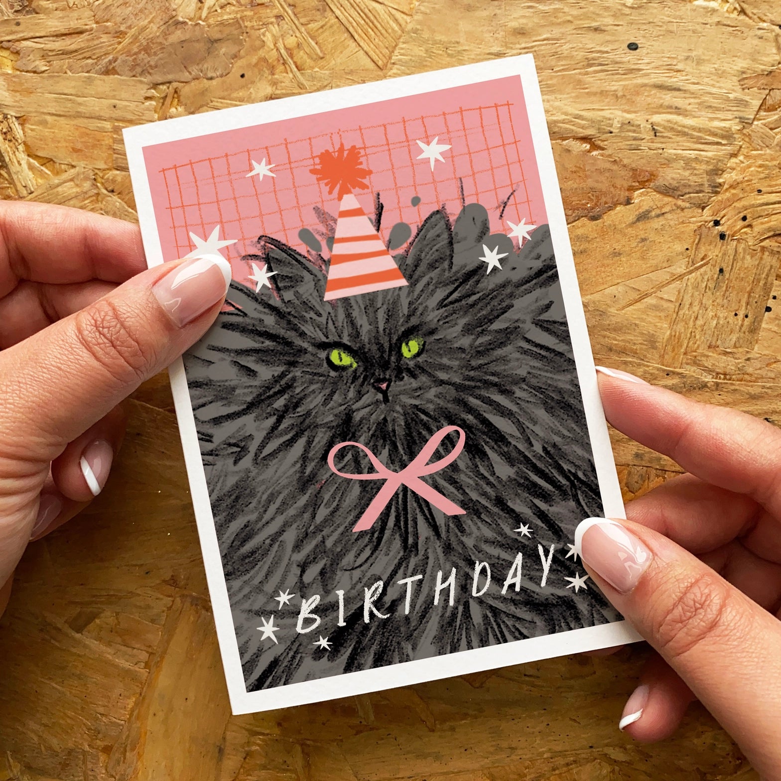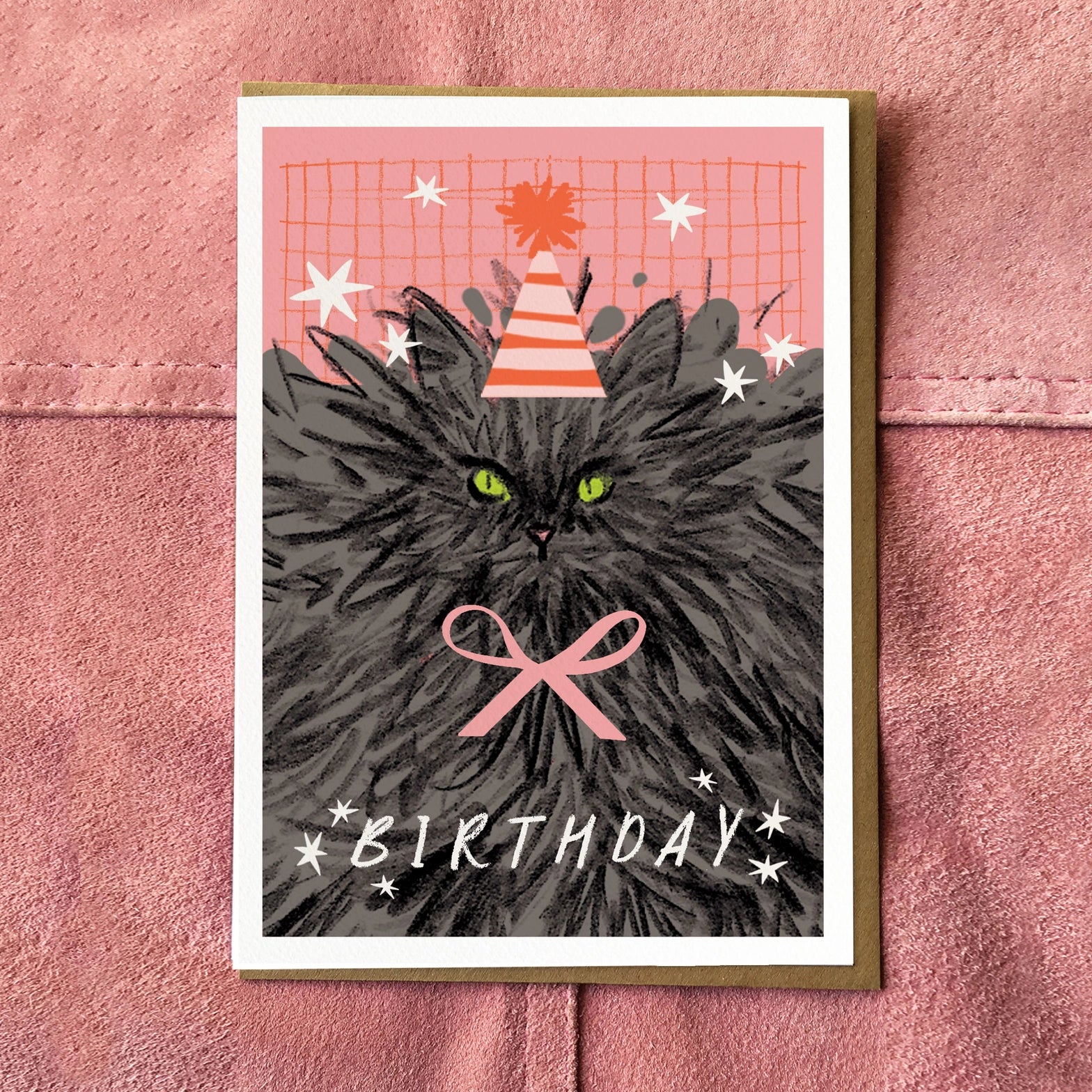 A sweet A6 birthday card to send to your favourite cat person. Comes with a textured kraft envelope. Cards are printed on luxurious hammered Italian Tintoretto card.