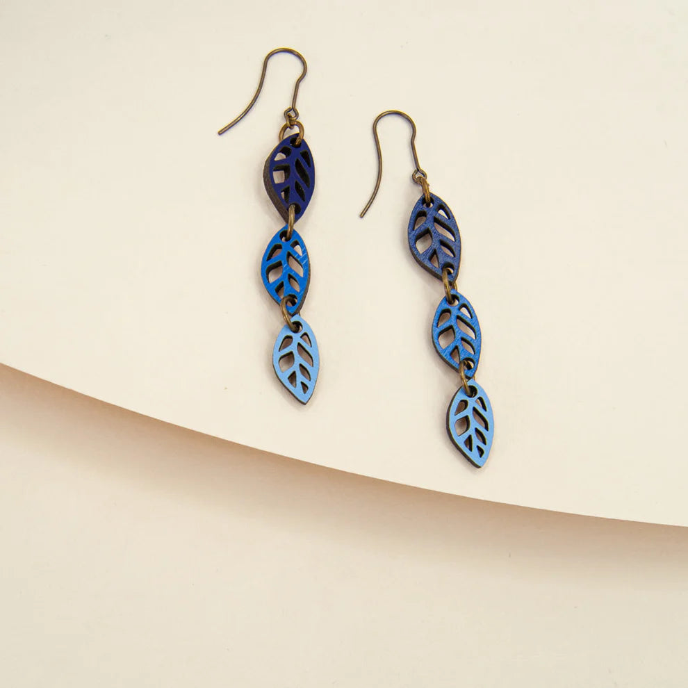 Step into the wild with every movement as these earrings sway in the breeze. Like untamed foliage, three exquisite blue leaves adorn these versatile and refined accessories, infusing any look with a hint of adventure.