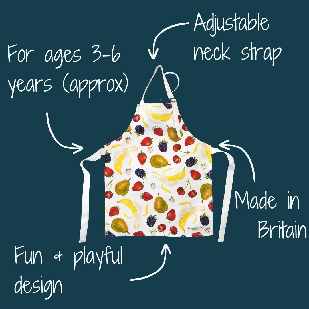 The perfect apron to encourage your little one to help out in the kitchen, featuring an illustrated fruity design that adds a playful touch to cooking sessions.