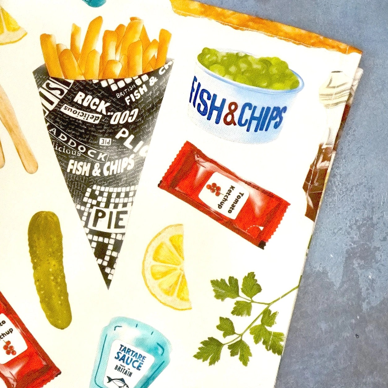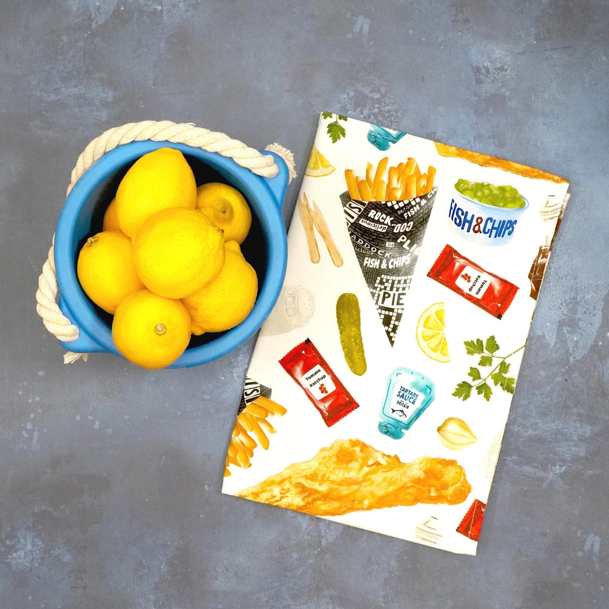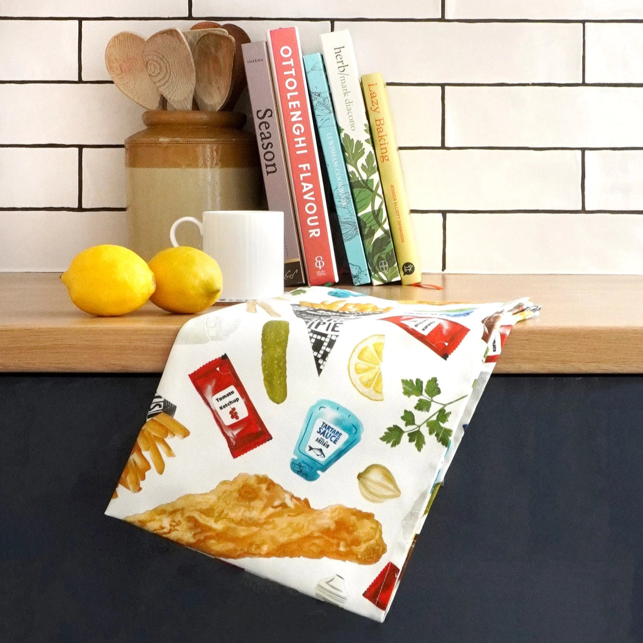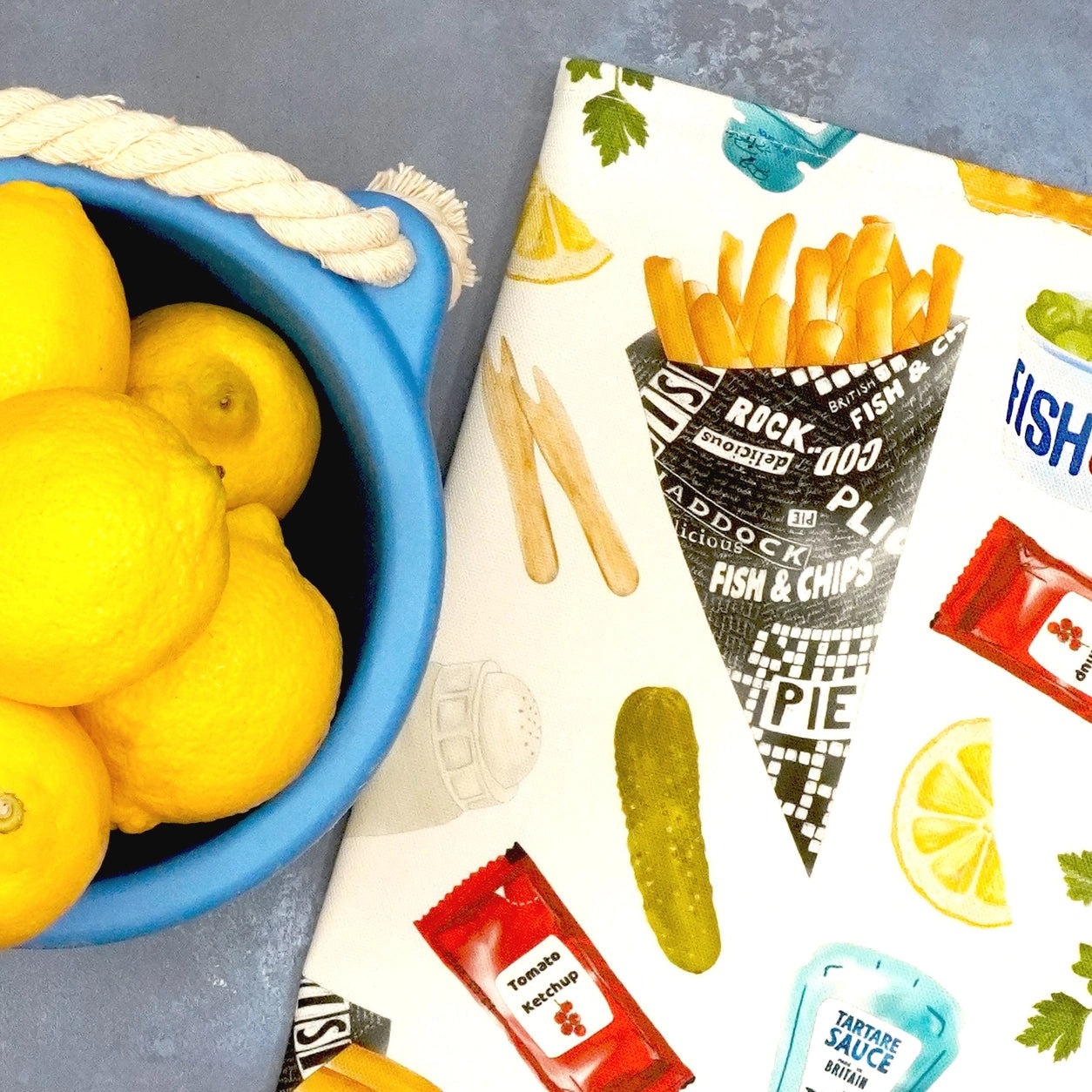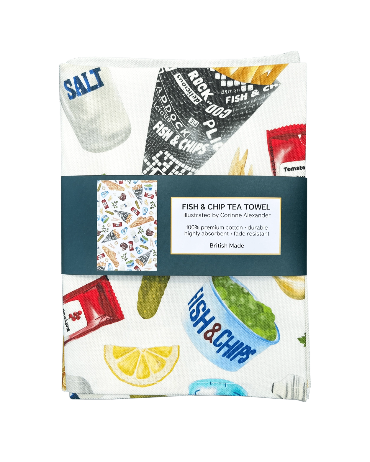 This delightful Fish & Chips Tea Towel is bound to spark conversations and laughter in any kitchen. Its playful fish and chips imagery adds a touch of lightheartedness to the daily kitchen routine.