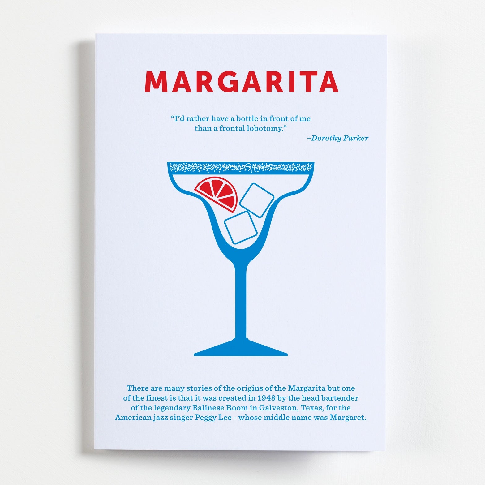 Margarita cocktail greeting card, complete with classic cocktail recipe on the reverse.