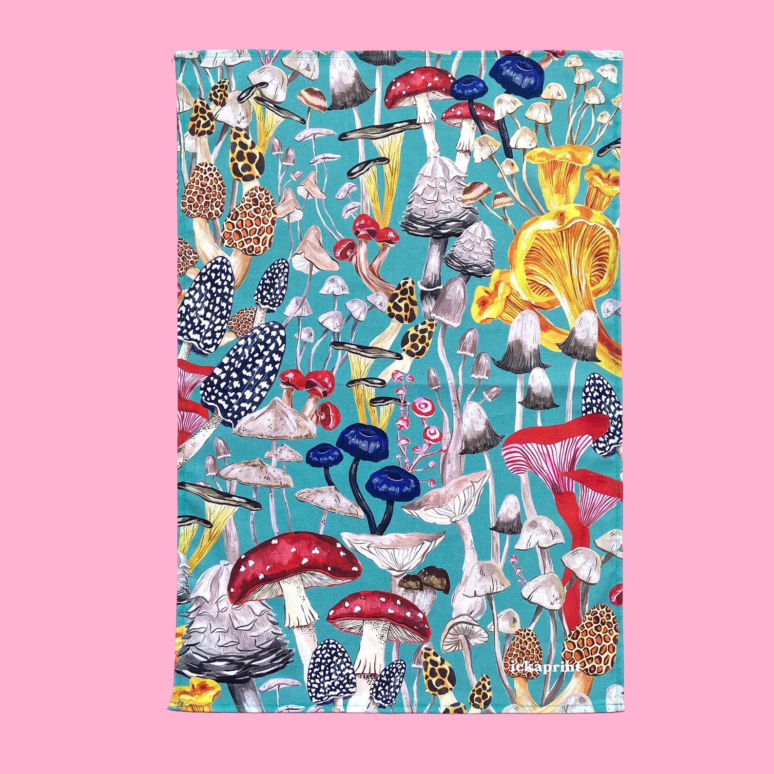 Make an impact with this super colourful tea towel, printed from an original painting. Great to add a pop of colour and personality to your kitchen! Makes a great gift for a new home or a fellow mushroom lover.
