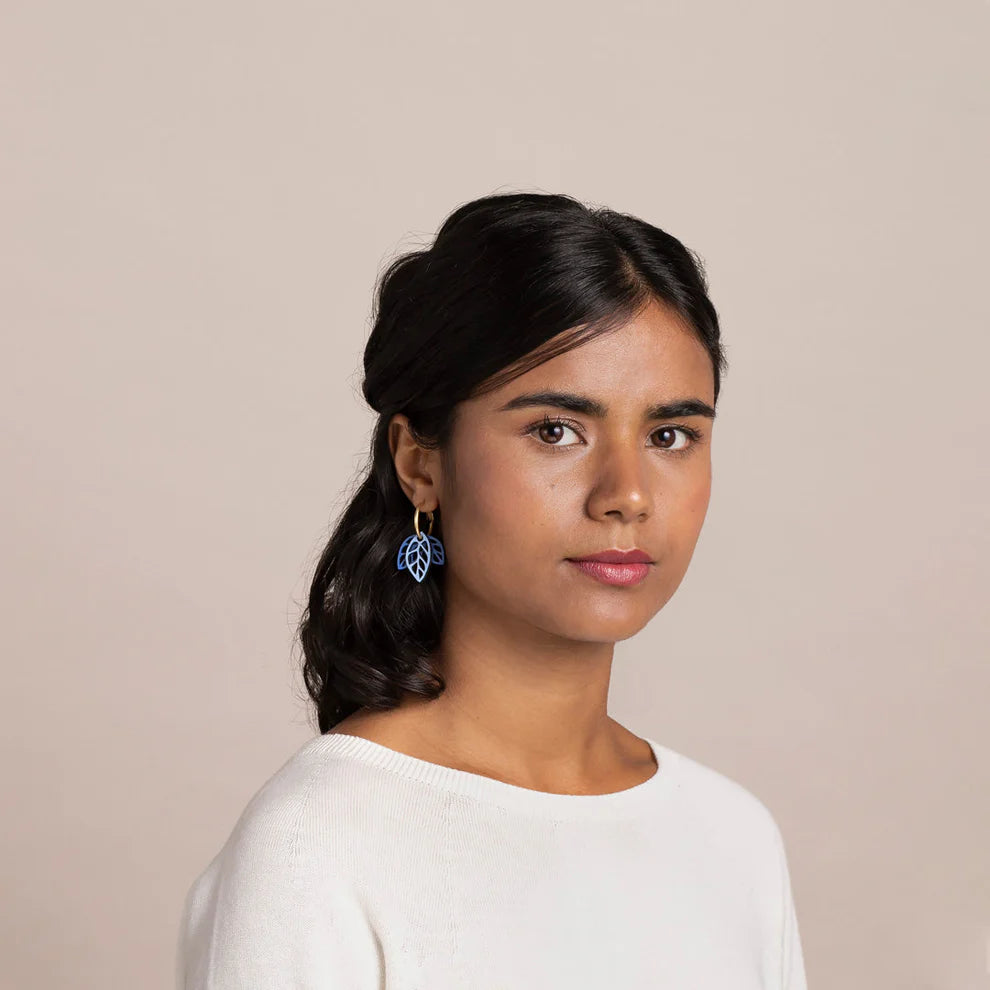 If you are a fan of plants, you will love these hoop earrings. Painted in two shades of blue that you can combine as you like.